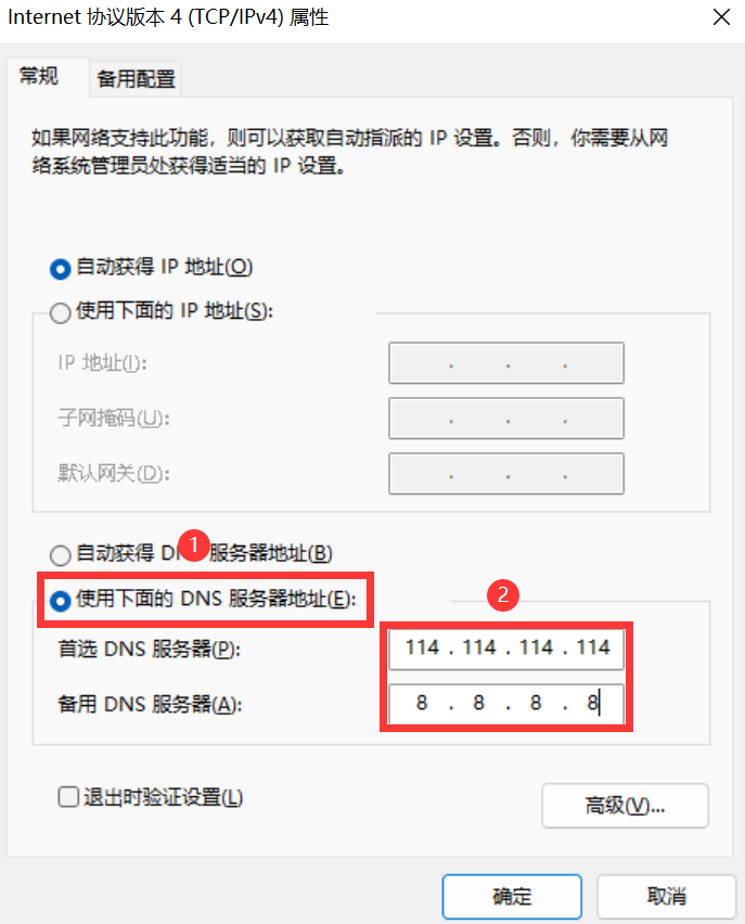 微软官网的DNS为4.2.2.1和4.2.2.2;国内通用DNS为114.114.114.114和114.114.115.115;以及全球通用的谷歌DNS为8.8.8.8和8.8.4.4。