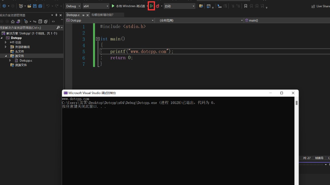 6)写好代码点击上方的本地调试器旁边的绿色三角按键