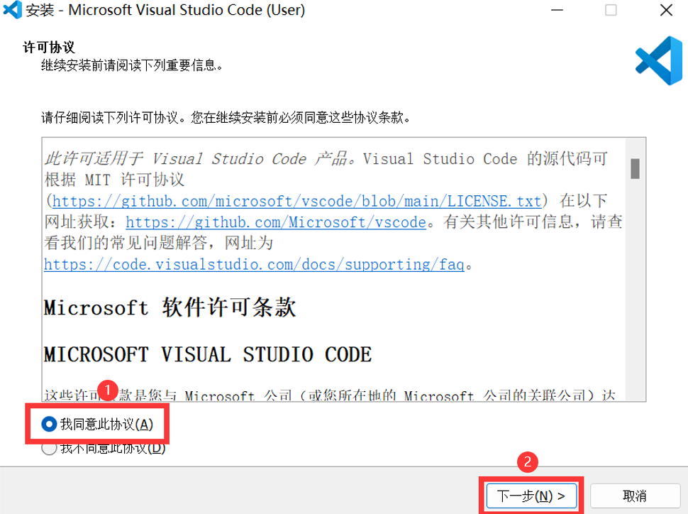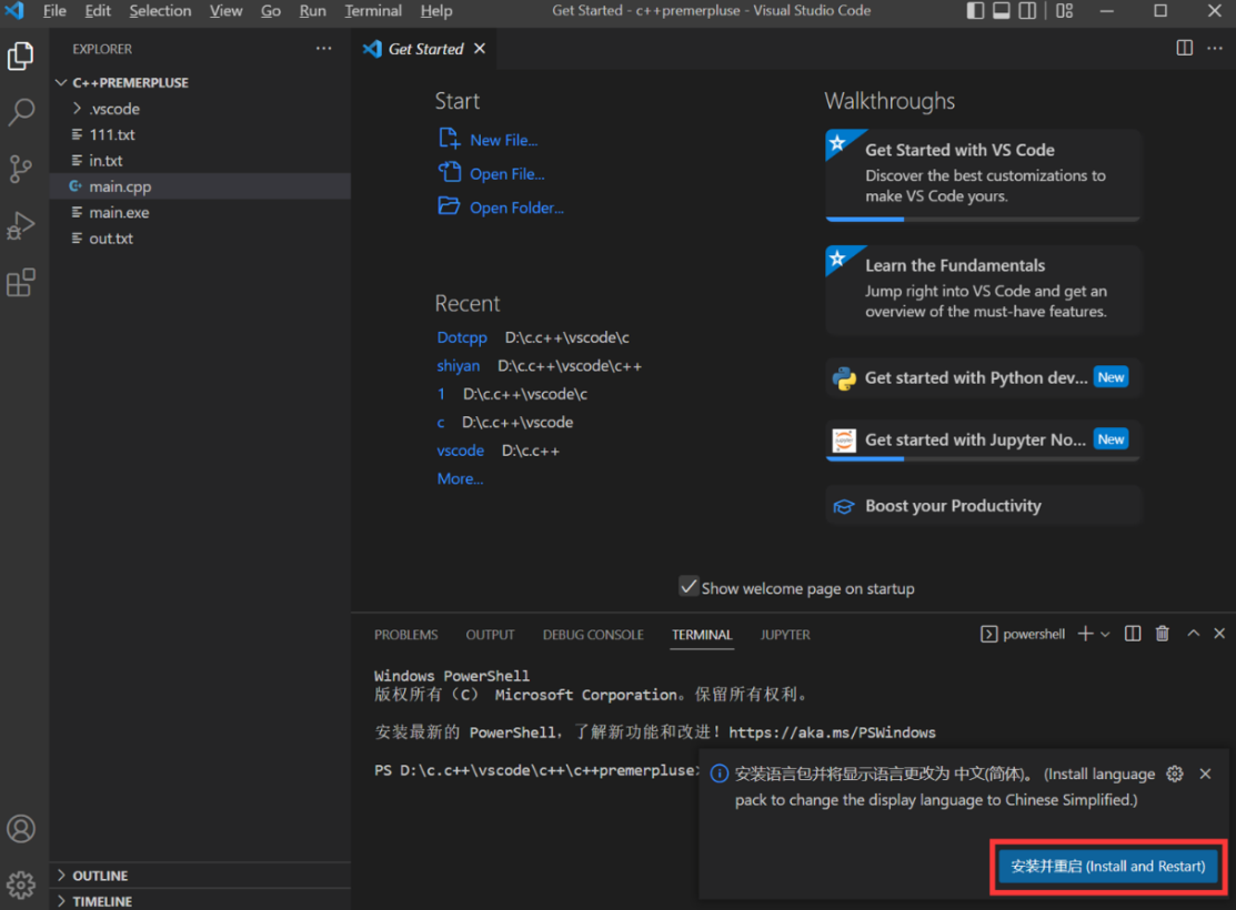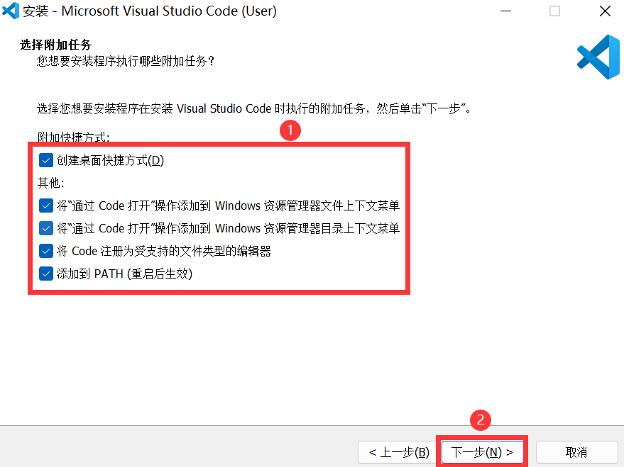 1)汉化,正常情况下VSCode会自动弹出右下角的选择,点击即可。
