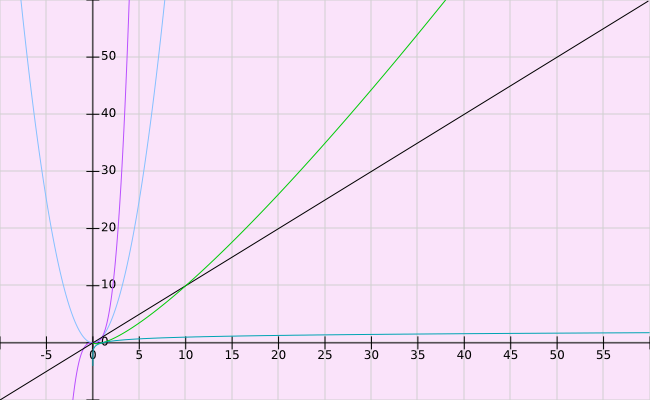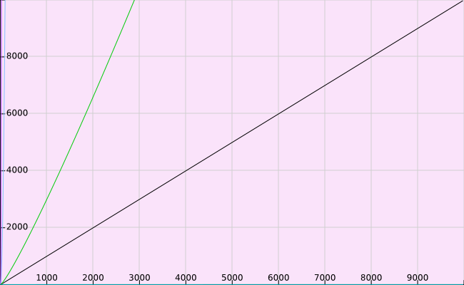 然而事实上,计算机的计算次数何止60次啊,计算机真实的计算速度是论千论万论亿级别的计算,所以我们的n会变得非常之大,让我们把坐标进行变化,以10000为界进行理解。