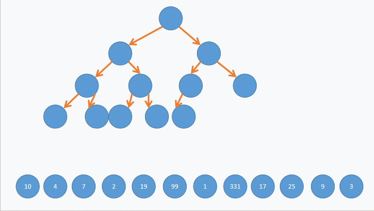 堆排序算法调用函数Build_max_heap将输入数组array[1..n]建立成堆。当中n表示数组长度。由于建立堆后,数组的最大元素被存放在根节点A[1],通过将A[1]与数组最后一个元素进行交换。将最大元素后移,实现排序。
