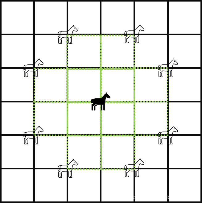 题解(DFS)分析:马只能走“日”字形,那么移动一次只能有八种情况出现,如图所示。