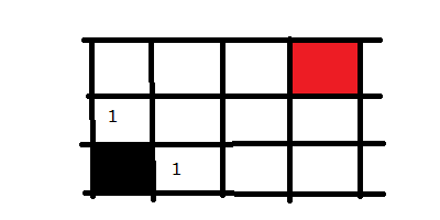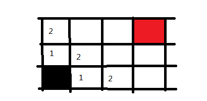 接下来,我们回到黑色方块右手边的1方块上,并将它能走的方向也记录下来,同样标记为2,因为也是走两步便可到达的地方。