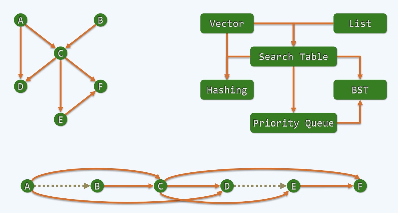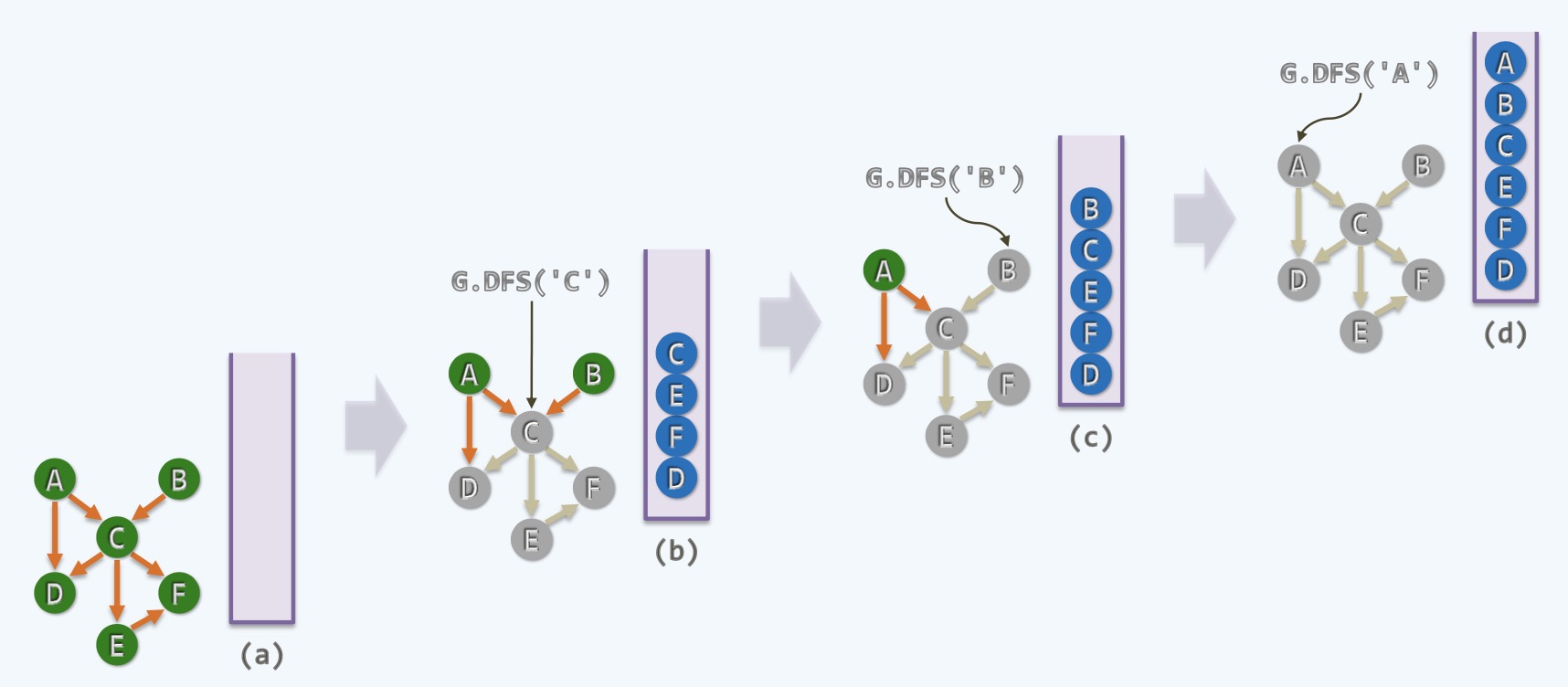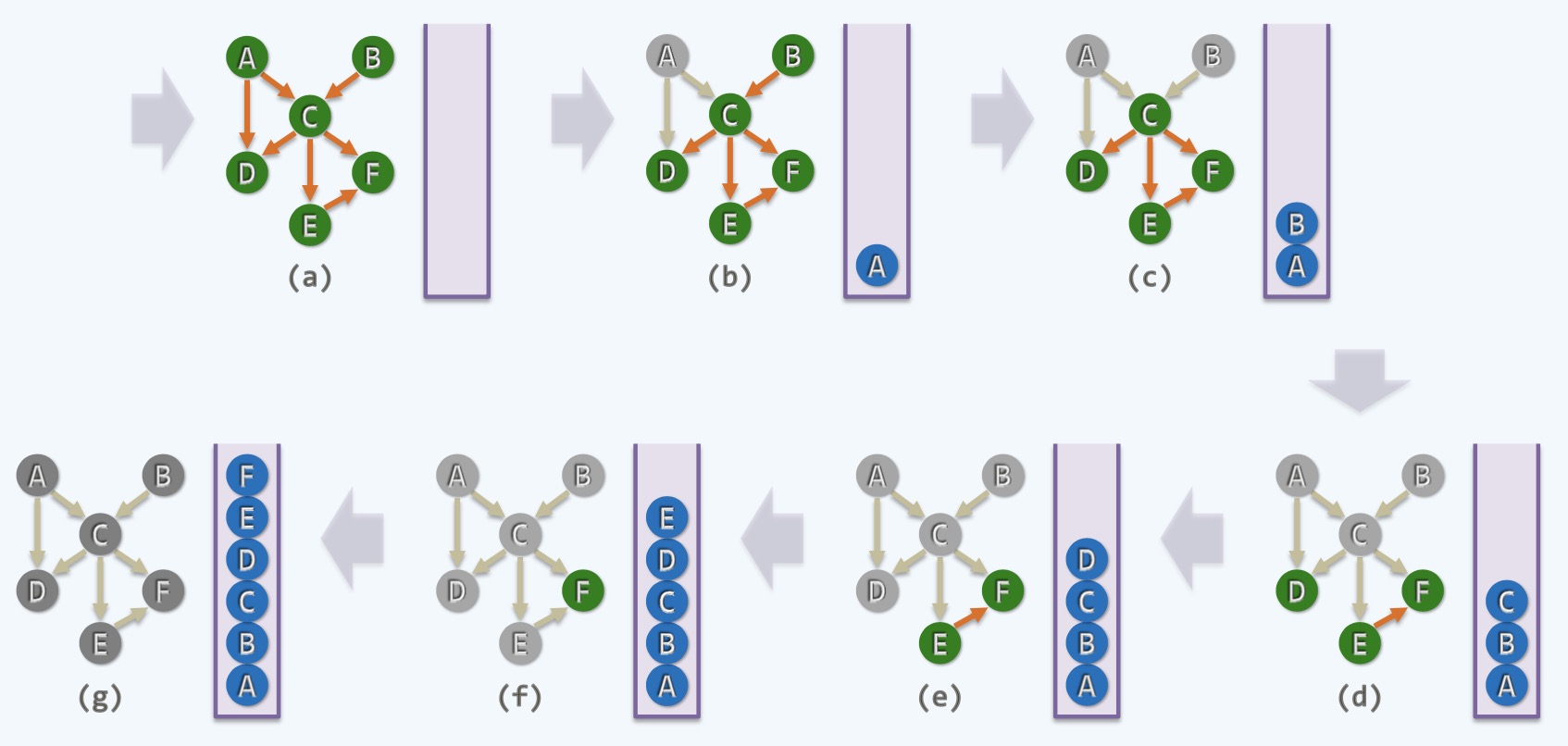 (14)如果不是有向图,而是无向图,每一条边都是对等的,当一开始到达c点的时候,c不会变为蓝色而是会去找无向图中的邻居, 比如a