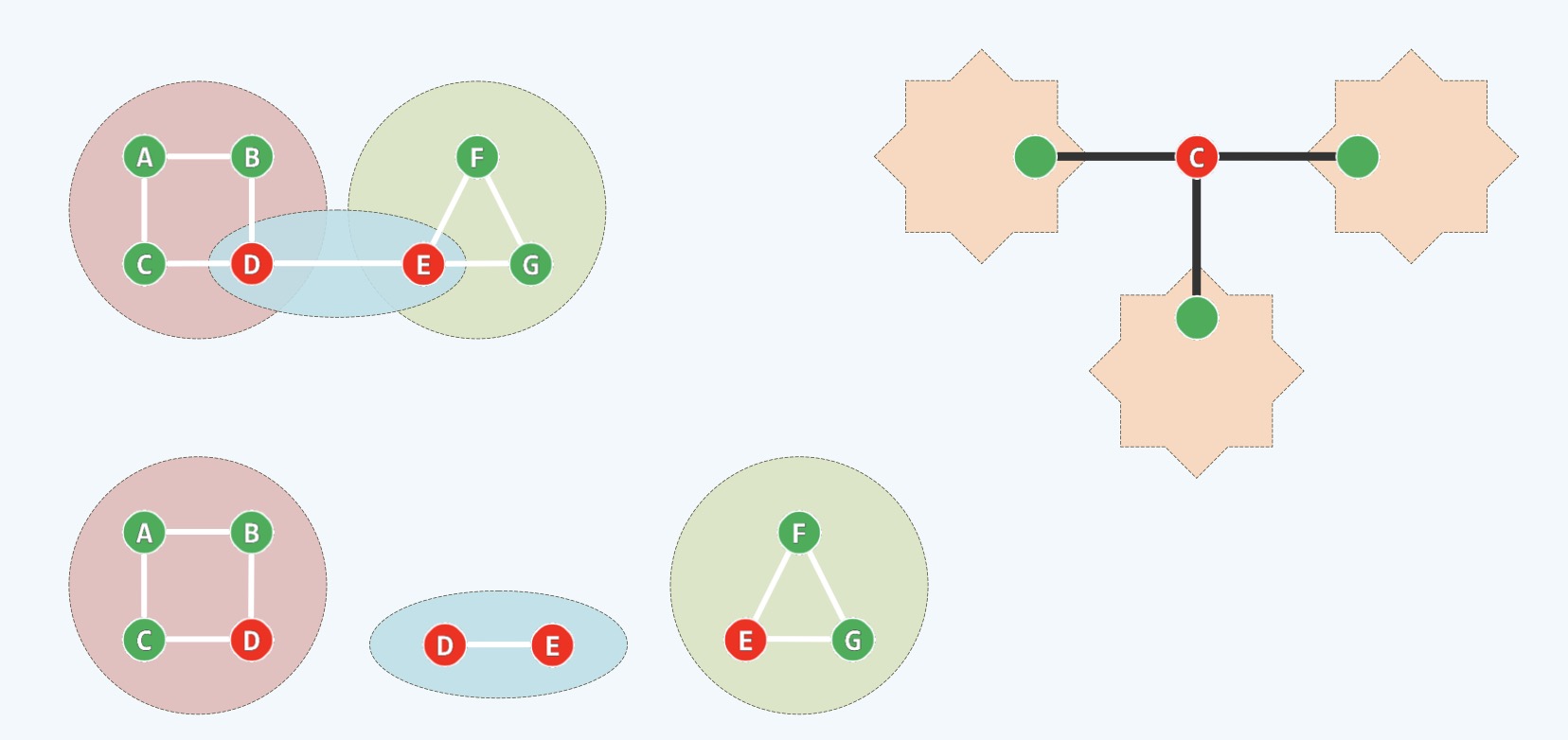 ①上图可以理解为两个区域和一座桥的交通图,可以看到,D和E两点对于整个交通图来说是非常重要的