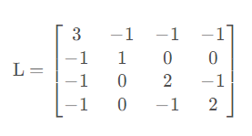 对于一个无向图来说,我们可以构造它的Laplace矩阵L,其中: