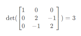 那么这个图的生成树的数量为3,可以证明删除任意行列的行列式的值不变。