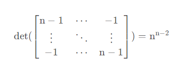 注意,Cayley定理是矩阵树定理的一个特殊情况,因为Cayley定理说明,一个n个节点的组成树的数量为