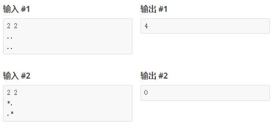 接下来n行,每行m个字符 . 或 *,其中 . 代表房间,* 代表柱子。