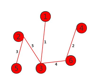 最小生成树(minimum spanning tree)是由n个顶点,n-1条边,将一个连通图连接起来,且使权值最小的结构。最小生成树可以用Prim(普里姆)算法或kruskal(克鲁斯卡尔)算法求出。