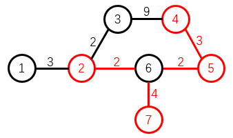 中所有边的权值和为 2+2+3+4=11,达到最小值。