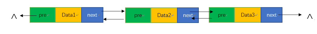 对此在单链表的基础上,产生了双向链表的概念,即: 在单链表的基础上,对于每一个结点设计一个前驱结点,前驱结点与前一个结点相互连接,构成一个链表。