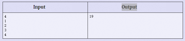 第1行输入一个数N(2 <= N <= 100) 第2 - N+1行每行输入一个数,分别表示N堆石子的数量(1 <= A[i] <= 10000)
