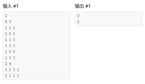 从第2行到第n+1行,每行m个数字(1 or 0),1表铺线,0表不铺线