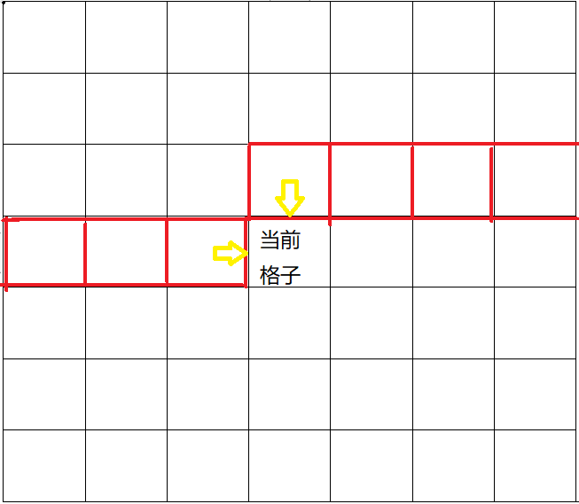 如上图,对于当前格子,我们只需要知道红色的这些格子就行了,再上面的格子具体的取法,已经不会对下面任何未处理的格子产生影响。
