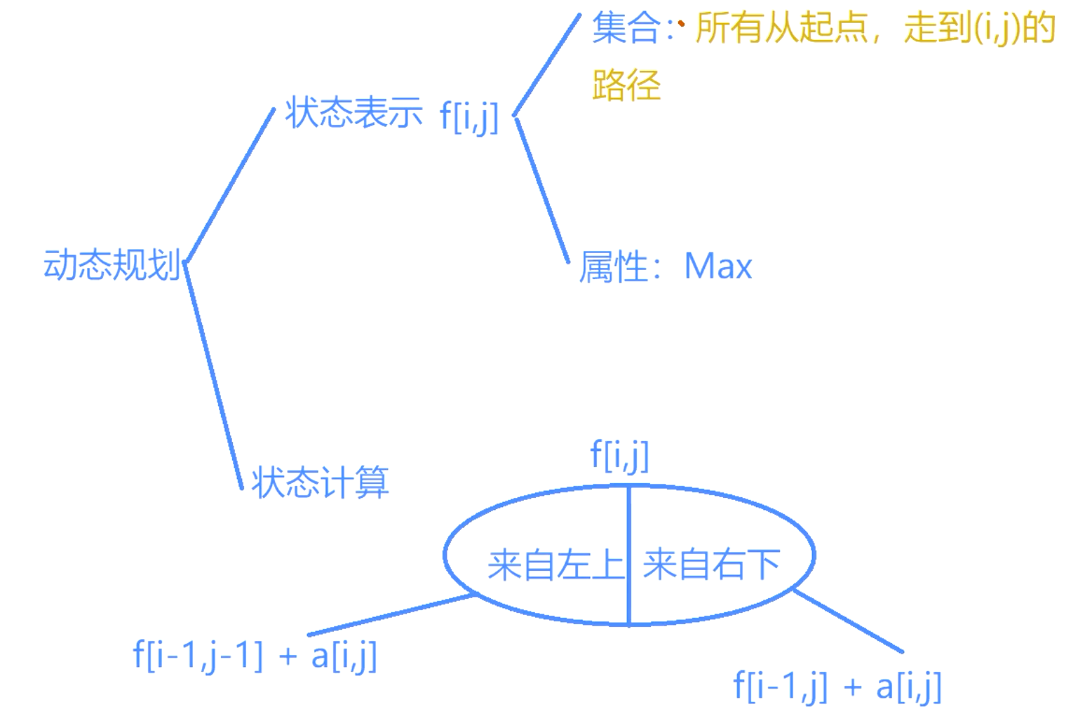 f[i][j]=max(f[i-1][j-1]+a[i][j],f[i-1][j]+a[i][j]);