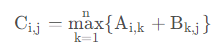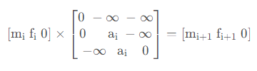 但是,转移式中含有max,不符合普通矩阵乘法的形式。不慌!我们可以大胆地重定义矩阵乘法 A ⋅ B = C: