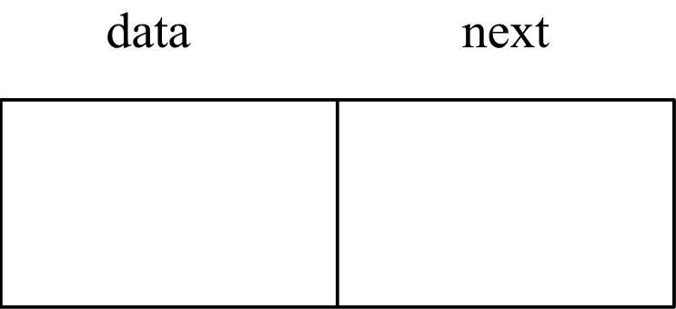 为了建立如图所示的存储结构(即每个结点两个域,data是数据域,next是指向结点的指针域),请将定义补充完整。