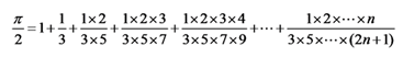 double fun(double eps) { double s=1.0,s1=1.0; int n=1; while(s1>=eps)/*当某项大于精度要求时,继续求下一项*/ { s1=s1*n/(2*n+1);/*求多项式的每一项*/ s=s+s1;/*求和*/ n++; } return 2*s; }