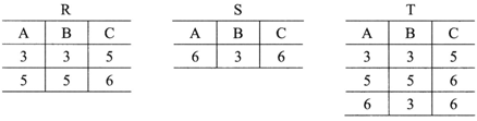 由关系R和S通过进行运算得到关系T,则所使用的运算为( )。