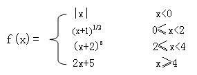 输入x ,计算并输出下列分段函数 f(x) 的值。可以调用数学库函数:平方根函数sqrt(),绝对值函数fabs() 和幂函数 pow()。