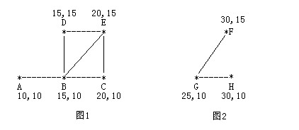 农民John的农场里有很多牧区。有的路径连接一些特定的牧区。一片所有连通的牧区称为一个牧场。但是就目前而言,你能看到至少有两个牧区不连通。现在,John想在农场里添加一条路径 ( 注意,恰好一条 )。对这条路径有这样的限制:一个牧场的直径就是牧场中最远的两个牧区的距离(本题中所提到的所有距离指的都是最短的距离)。考虑如下的两个牧场,图1是有5个牧区的牧场,牧区用“*”表示,路径用直线表示。每一个牧区都有自己的坐标: