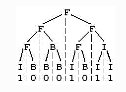 现在给定一个长度为2N的“01”串,请用上述构造方法构造出一棵FBI树,并输出它的后序遍历序列。