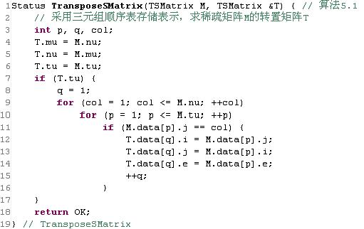 图:稀疏矩阵转置的算法描述