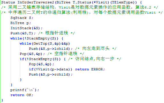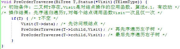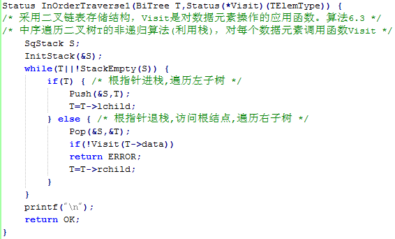 而二叉树的前序、中序遍历是非常重要的能够访问二叉树所有结点的算法,下面分别列出一种先序遍历和两种中序遍历的算法。