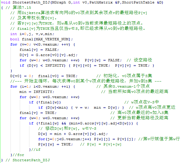 在本题中,读入一个有向图的带权邻接矩阵(即数组表示),建立有向图并按照以上描述中的算法求出源点至每一个其它顶点的最短路径长度。