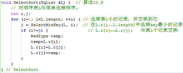 选择排序的基本思想是:每一趟比较过程中,在n-i+1(i=1,2,...,n-1)个记录中选取关键字最小的记录作为有序序列中的第i个记录。