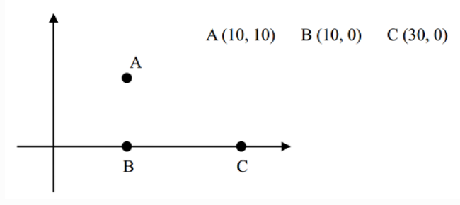 其中 |AB|=10,|BC|=20,|AC|=10–√5≈22.36