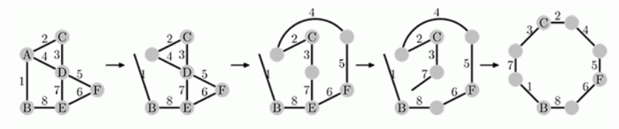 例如上面的步骤中,先将 A 点烧熔,使得导线 1 与导线 2,4 点分离;再将 D 点烧熔,使得 4,5 与 3,7相离;再烧熔 E,使 7 与 6,8 相离;最后将 1,7 相连。