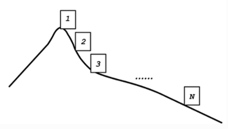 L 公司在山上有 N 个工厂。如图所示,工厂 1 在山顶,工厂 N 在山脚。