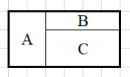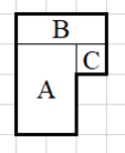 例如用 3 × 2 的矩形(用 A 表示)、3 × 1 的矩形(用 B 表示)和 1 × 1 的矩形(用 C 表示)可以拼出如下 6 边形。