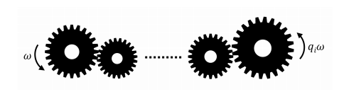 小明看着这些齿轮,突然有 Q 个疑问:能否按一定顺序组装这些齿轮使得最右边的齿轮的转速是最左边的齿轮的 qi 倍?
