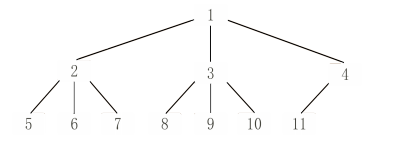 例如下图是一个拥有 11 个结点的完全 3 叉树。