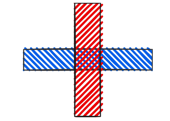 第 3 个矩形可以和第 1 个矩形拼十字,第 3 个矩形也可以和第 4 个矩形拼十字。所以一共有两对矩形可以拼十字,答案为 2。