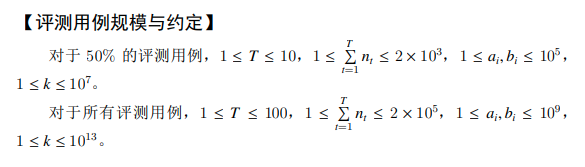 输入的第一行包含一个整数 T,表示每次输入包含 T 组数据。
