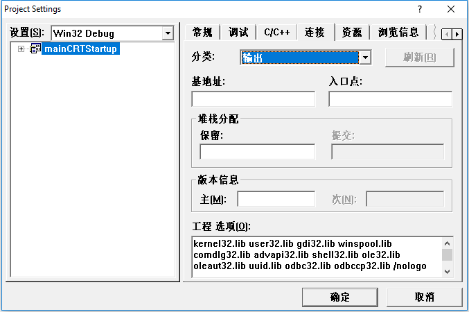 编译器工具栏 Project – Setting – Link – Output 如下图: