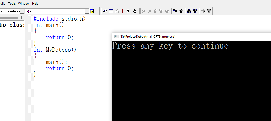 事实上,在VC6编译器下,ANSI编码环境下C语言的真正启动函数名叫做mainCRTStarup,英语好的同学应该可以明白一些,Starup就是初始化、启动的意思,其实也可以根据这点明白这个函数作用就是在C语言启动之前做一些必要的工作,如堆栈初始化、获得主函数的参数等等。