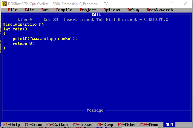 TC编译器是古老的十六位系统环境下的编译器,这个程序最大的特点就是基本不用鼠标,以前一直在DOS环境下运行,他的界面也是那种像BIOS一样的界面,为了兼容它,现在XP、win7、win10也可以在模拟器下运行它,下载地址在: